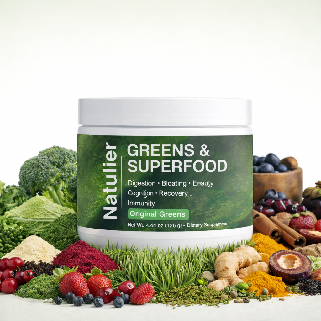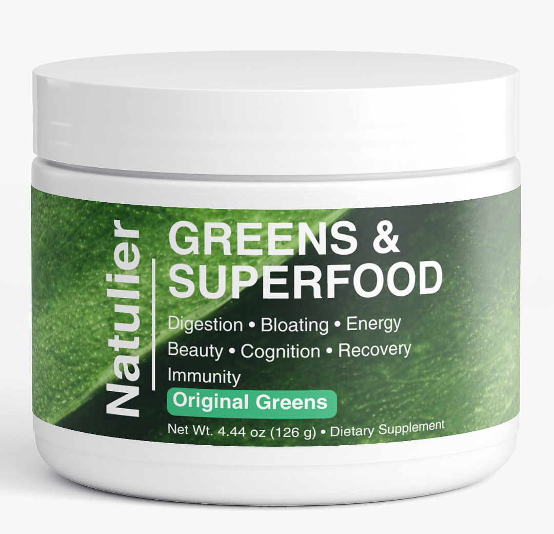 Hoy puedes obtener un envase completo de nuestros greens en polvo — suficiente para 30 porciones, con 58% de descuento.
