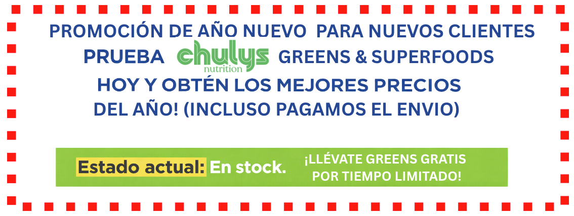 ¡Envío gratis en tu primer pedido en pedidos mayores a 3 Frascos de Chulys Greens & Superfoods!