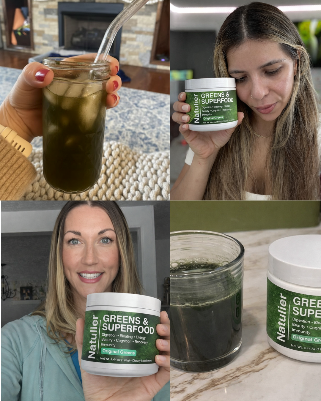 “Estos greens están increíbles. Había dejado de tomar greens porque siempre me causaban inflamación y malestar. Con estos no tuve ninguno de esos problemas. El sabor es delicioso y el color — WOW.”